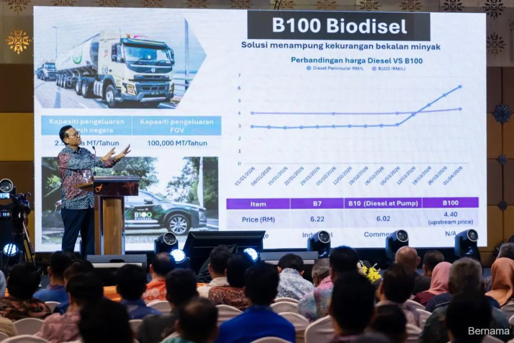 At an estimated price below RM5.00 per litre, B100 could not only reduce the reliance on diesel, but also support domestic fuel price stabilisation and strengthen national energy security, he said.